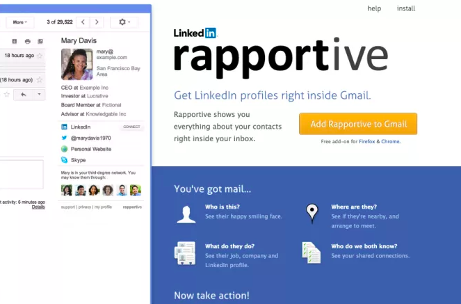 Rapportive is a plugin for Gmail that automatically shows you the LinkedIn profiles of anyone you correspond with via email — whether it’s sending or receiving emails. You then have the option to connect with them, which means you can build your contacts quickly.