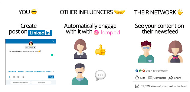 Lempod massively increases the reach of your LinkedIn profile by letting you create and join different groups whose purpose is to like and comment on your posts. Essentially, it means your posts will always be engaged with, which in turn will attract more organic likes, comments and traffic towards your profile.