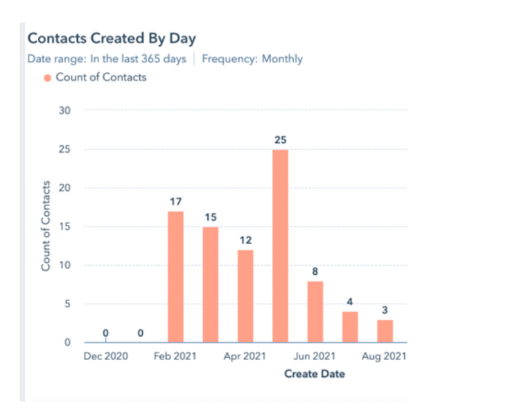 High-quality leads since day 1: This chart shows the amount of leads captured by Marketing Mavens over the course of this collaboration.